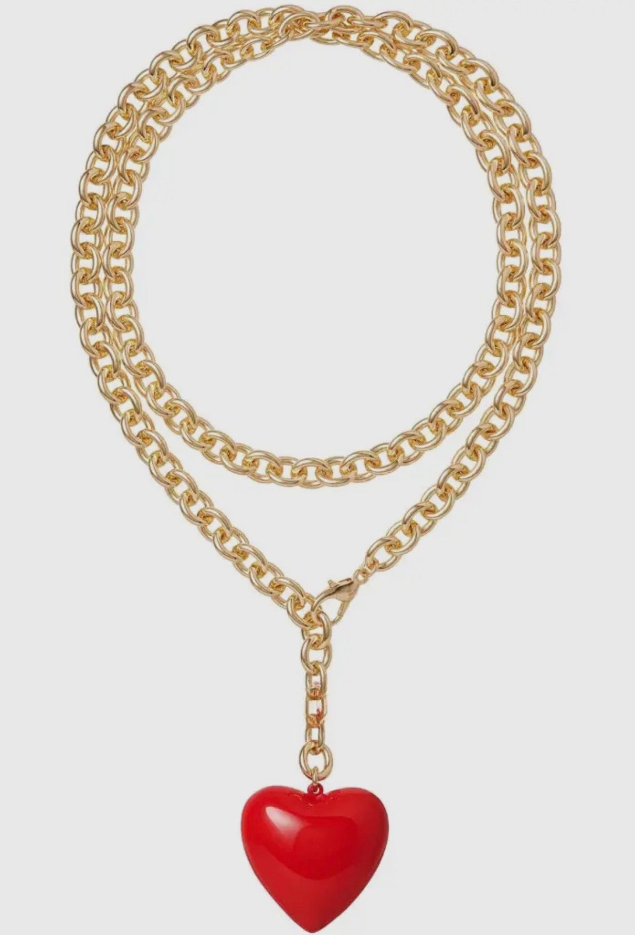 - Amour is an extra long over sized Rolo Chain that can be worn wrapped or as a Lariat. The 1.5" Full Puffy Heart makes a playful statement.