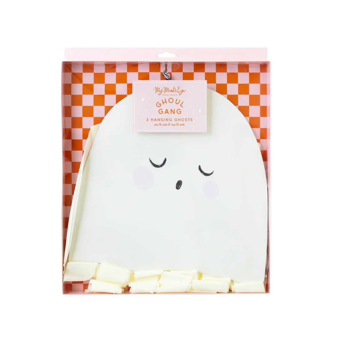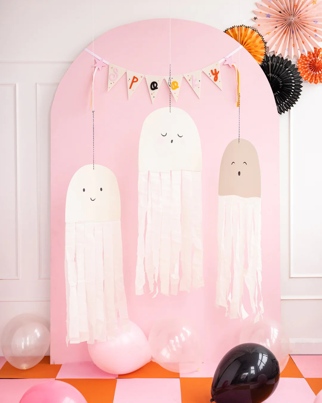 Hang with the ghouls this Halloween with this set of hanging ghosts. Included are 3 ghost that feature crepe streamers for an extra frightful detail and are sure to add just the right amount of fright your Halloween party.