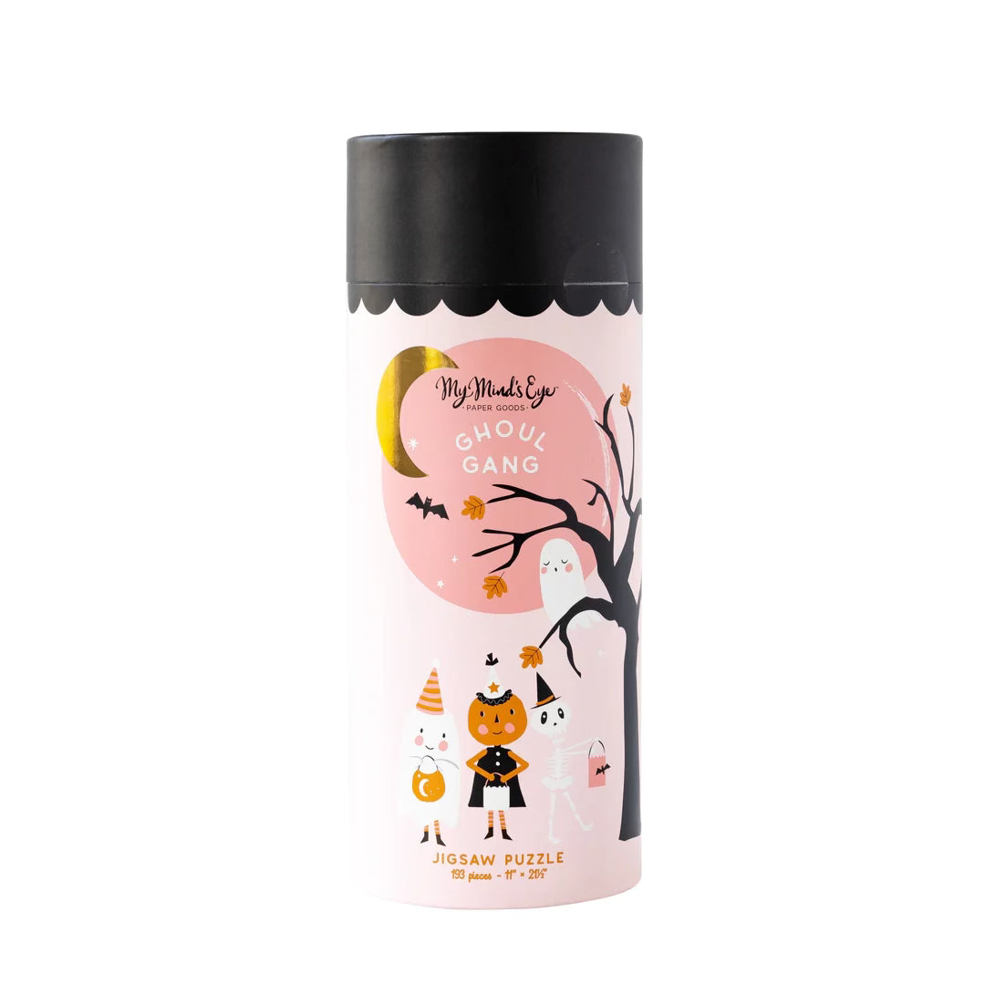 Gather the ghoul gang this Halloween for some spooktacular puzzling with this whimsical puzzle. Featuring a happily haunted scene this 193 piece puzzle is the perfect way to wind down a night of trick or treating with the little ghosts and goblins.