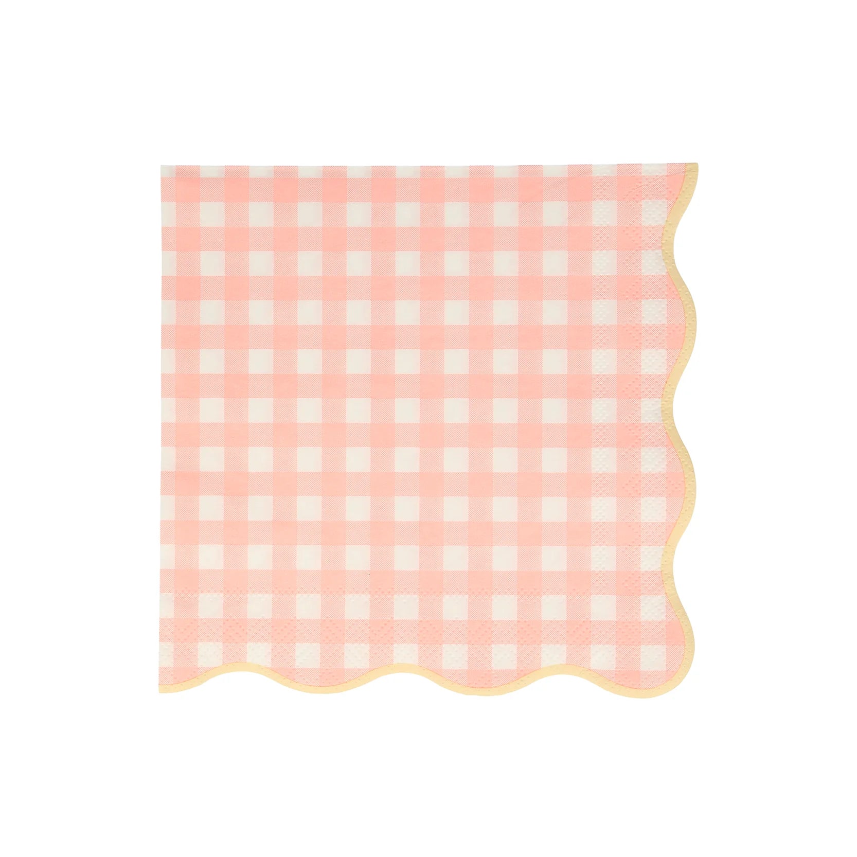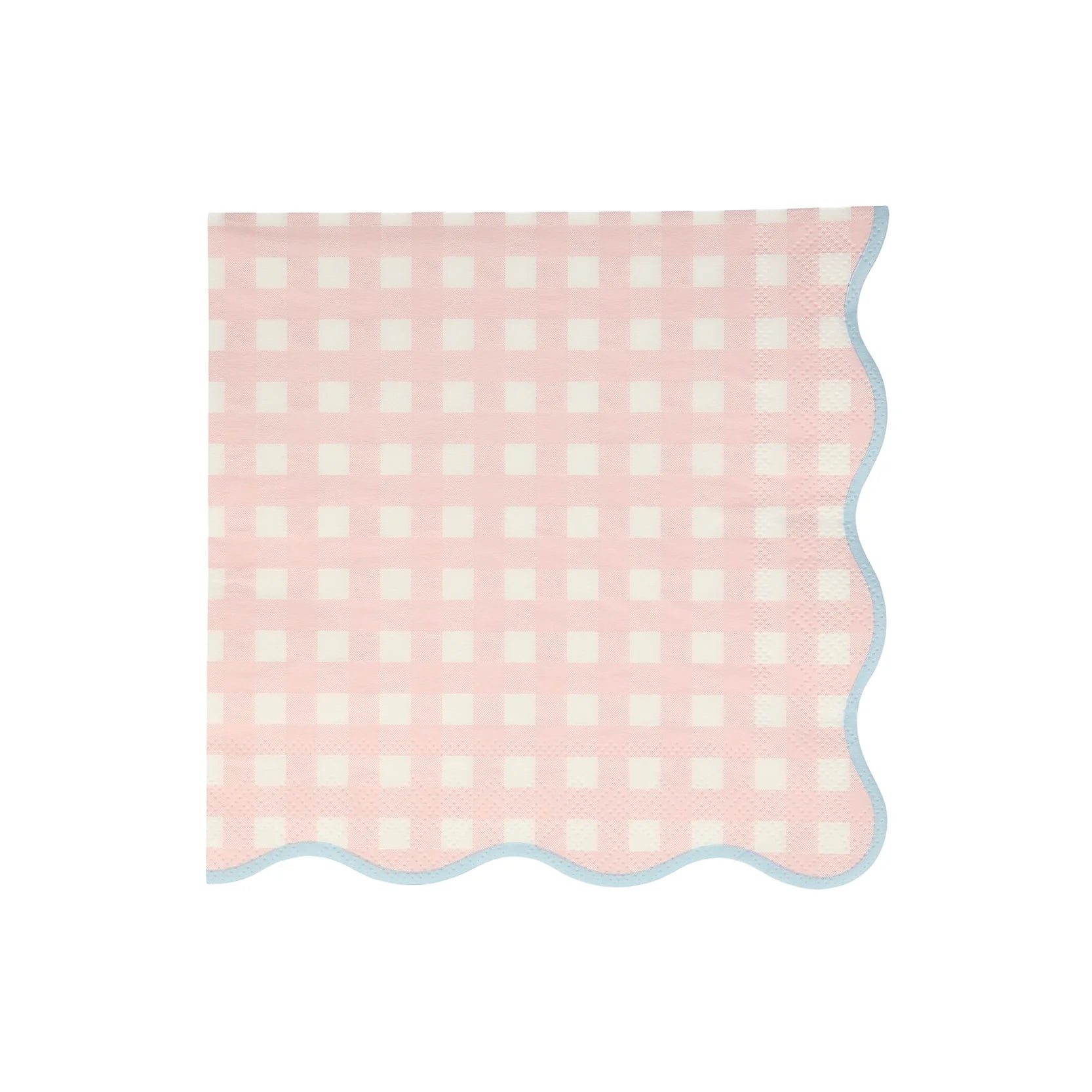 - Gingham is a classic spring and summer print, and looks amazing on our party tableware. These dinner plates feature a delightful scalloped edge with a co-ordinating colored border. They are perfect for parties and picnics.