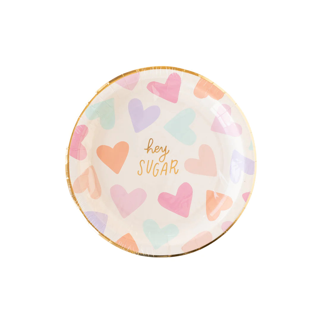 Add a splash of sweetness to your next gathering with our Hey Sugar Paper Plates! Featuring a playful arrangement of hearts in pastel colors, these plates are sure to turn your snackin' sesh into one sugary treat!