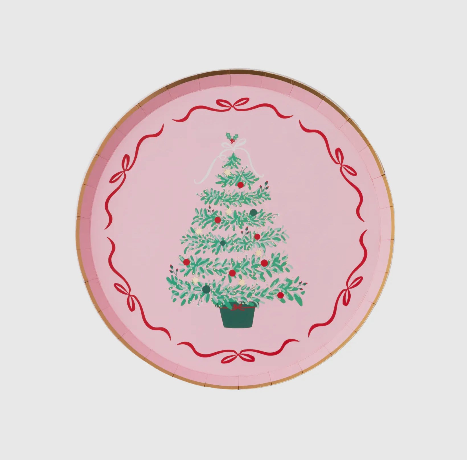 Add charm to your holiday table with our Pink Christmas Tree Dessert Plates! Featuring a delicate tree design with a festive red bow border.