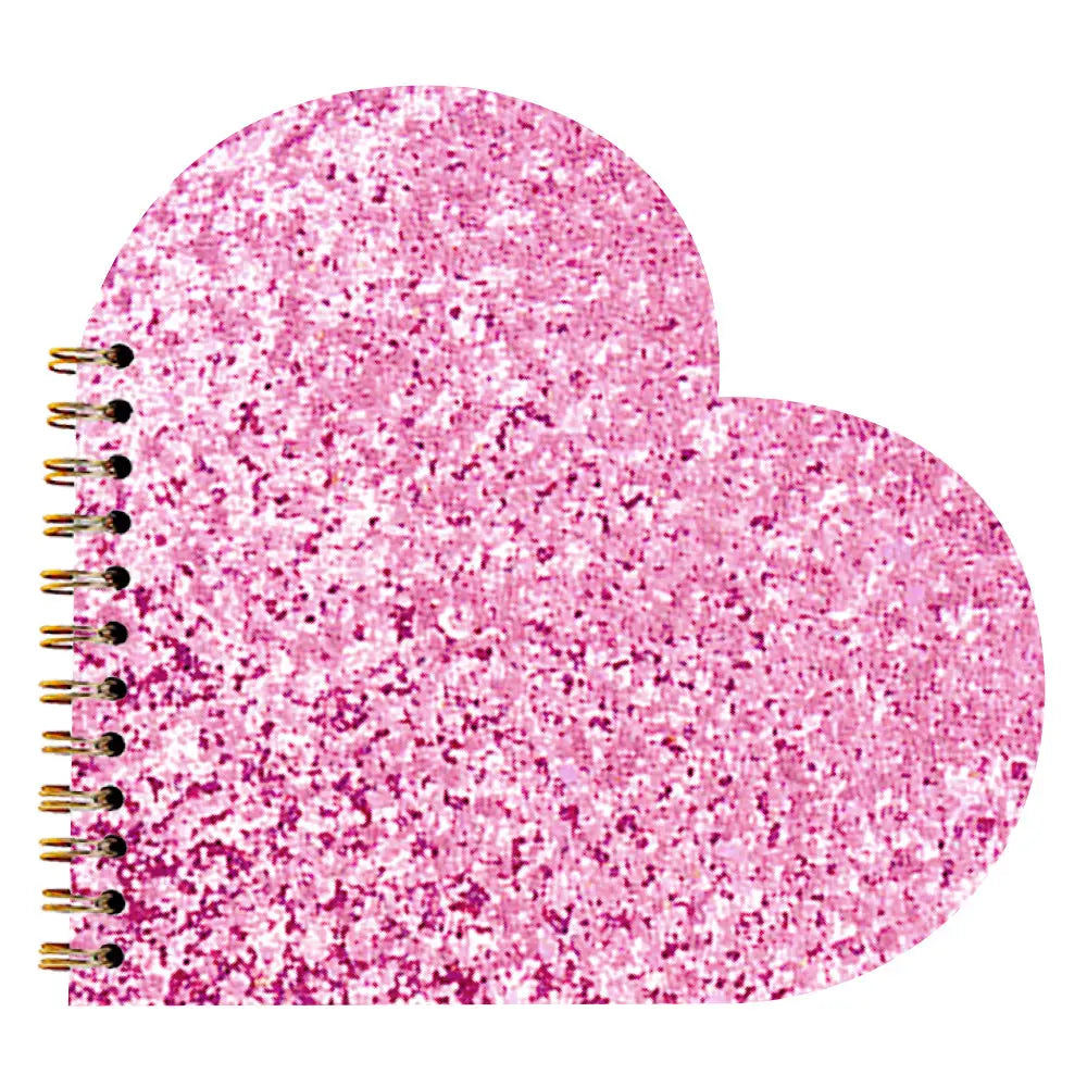 - Pink Glitter Heart Shaped Spiral Bound Notebook