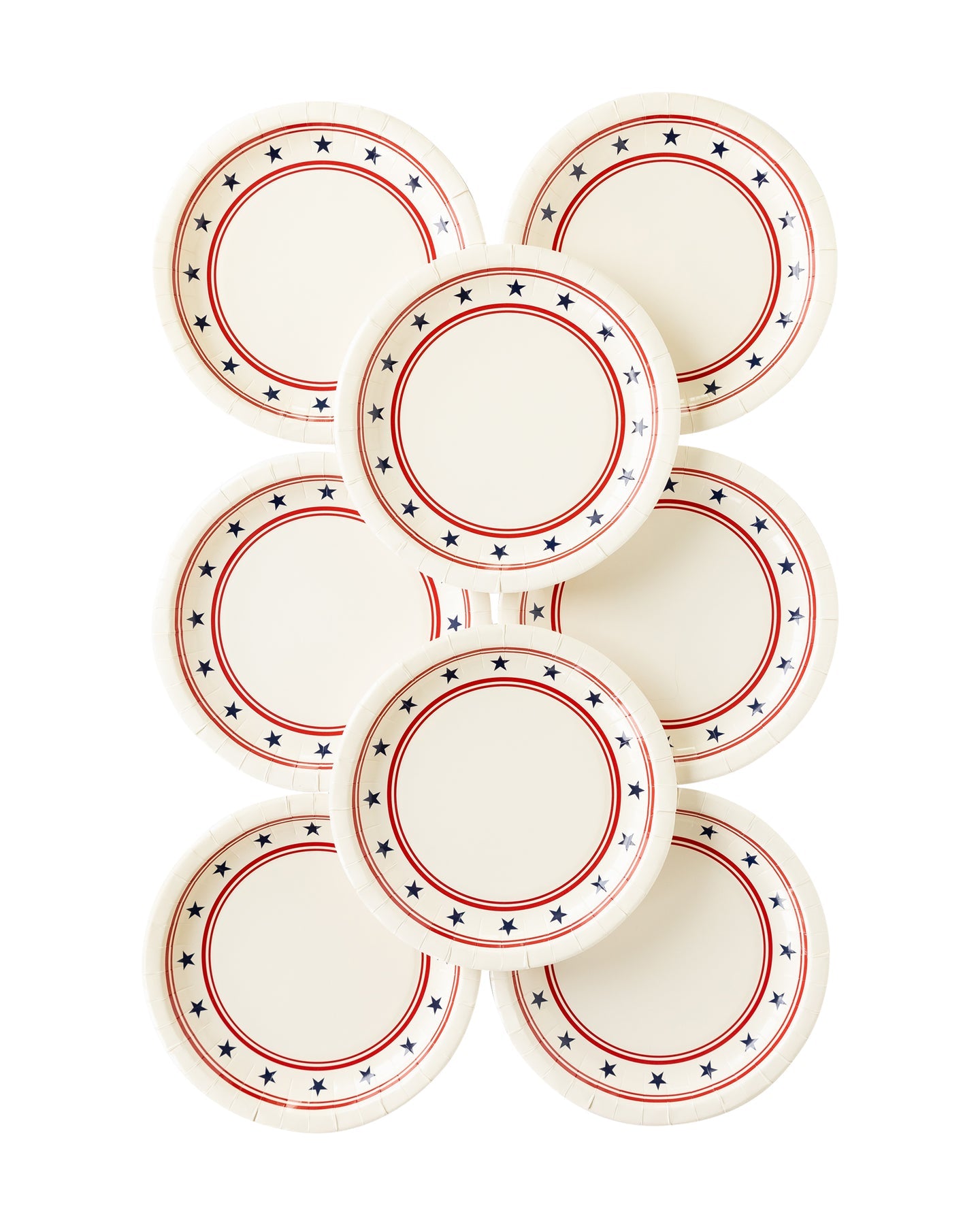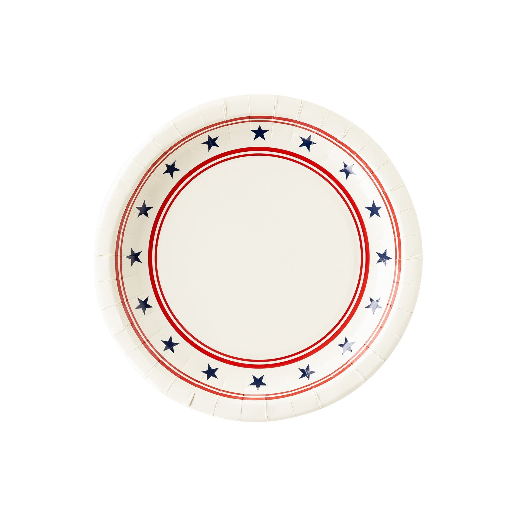 Make a star spangled statement at your celebrations for Memorial Day or Fourth of July with these stars and stripes party plates. These dinner sized plates are the perfect red, white and blue addition at backyard barbeque or late night picnics by fireworks!