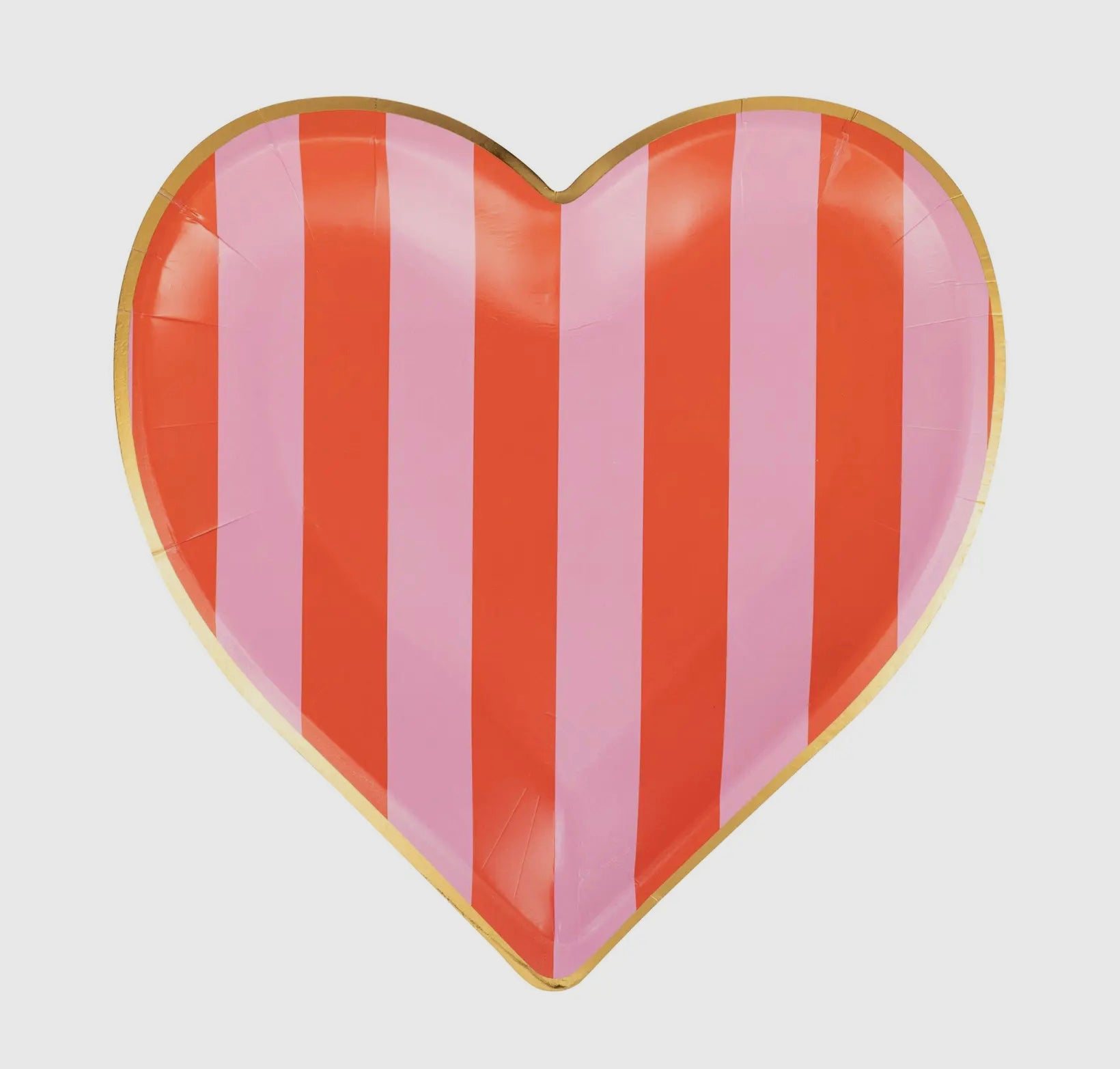 - Express your love in a unique way with our Stripe Heart Shaped Plate. Perfect for Valentine's Day or any occasion, this plate boasts a playful striped design in the shape of a heart. Add some love to your meals with this charming addition to your kitchenware collection.