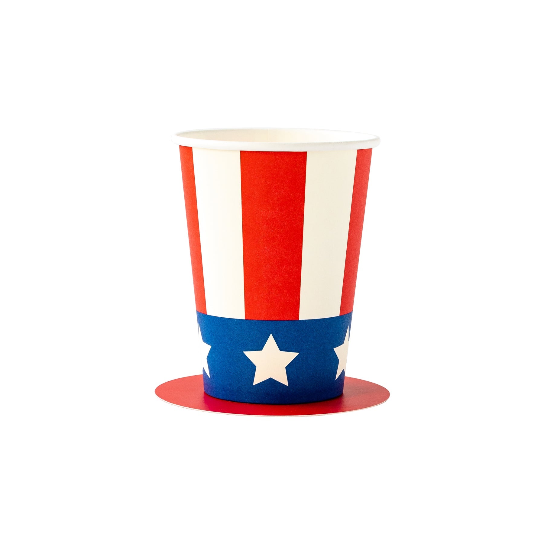 Sip in patriotic style this summer with these festive party cups. Designed to look like Uncle Sam's famous hat, these party cups are sure to be a hit at your Fourth of July celebrations. Guests are sure to be crowded around the lemonade table, delighted by these stars and stripes inspired party cups until it is time for the fireworks to start!
